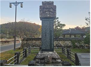 조선 개국에 큰 공을 세운 경무공 이제에게 태조가 1392년 10월에 개국공신 일등에 봉하며 내린 개국공신교서이다. 이 교서는 조선 최초로 발급된 공신교서로서 실물이 공개되어 전하는 유일한 개국공신교서이며 조선시대 제도사, 서예사 연구 등 학술적으로 중요한 가치가 있어 2018년 6월 27일 국보로 승격되면서 이 교서의 원문과 내용을 비석에 새겨 후세에 전하고자 세웠다고 한다.