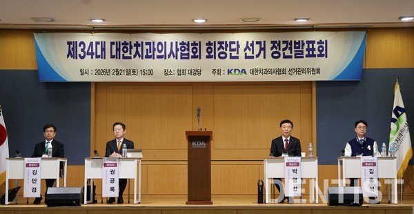 대한치과의사협회 선거관리위원회(위원장 유석천, 이하 치협 선관위) 주최 ‘제34대 치협 회장단 선거 정견발표회’가 지난 21일(토) 치협 대강당에서 열렸다. 이날 정견발표회는 각 후보 소개와 모두발언 및 정견발표, 선관위 공통질의와 각 후보 상호질의 순으로 진행됐다.