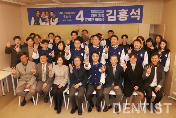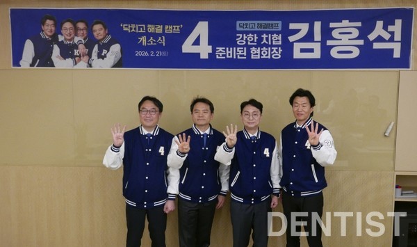 지난 21일(토) 대한치과의사협회 제34대 회장단선거에 출마한 기호 4번 김홍석 회장 후보(오 철·윤동인·이진균 부회장 후보)가 캠프 개소식을 열고, 승리를 다짐했다.