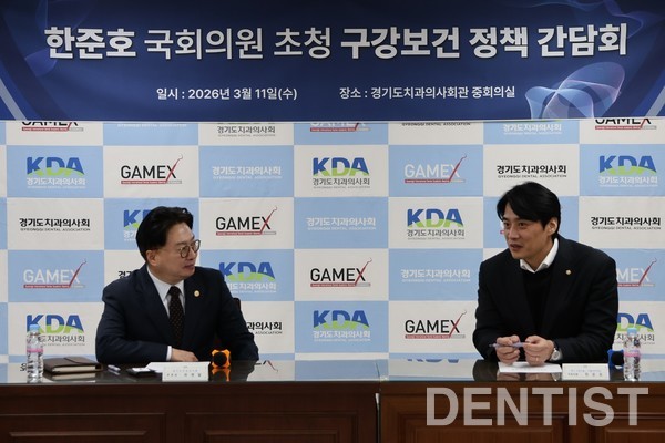 경기도치과의사회(회장 전성원, 이하 경치)가 지난 11일(수) 회관 4층 중회의실에서 한준호 국회의원(고양 을)을 초청해 경기도 구강보건 정책에 대한 간담회를 가졌다. 이날 간담회에는 경치에선 위현철 부회장을 비롯해 양동효 부회장, 박인오 총무이사가, 수원분회에서는 박용규 분회장, 김황현 총무이사, 수호천사엔젤 김주형 대표 등이 참석했다.